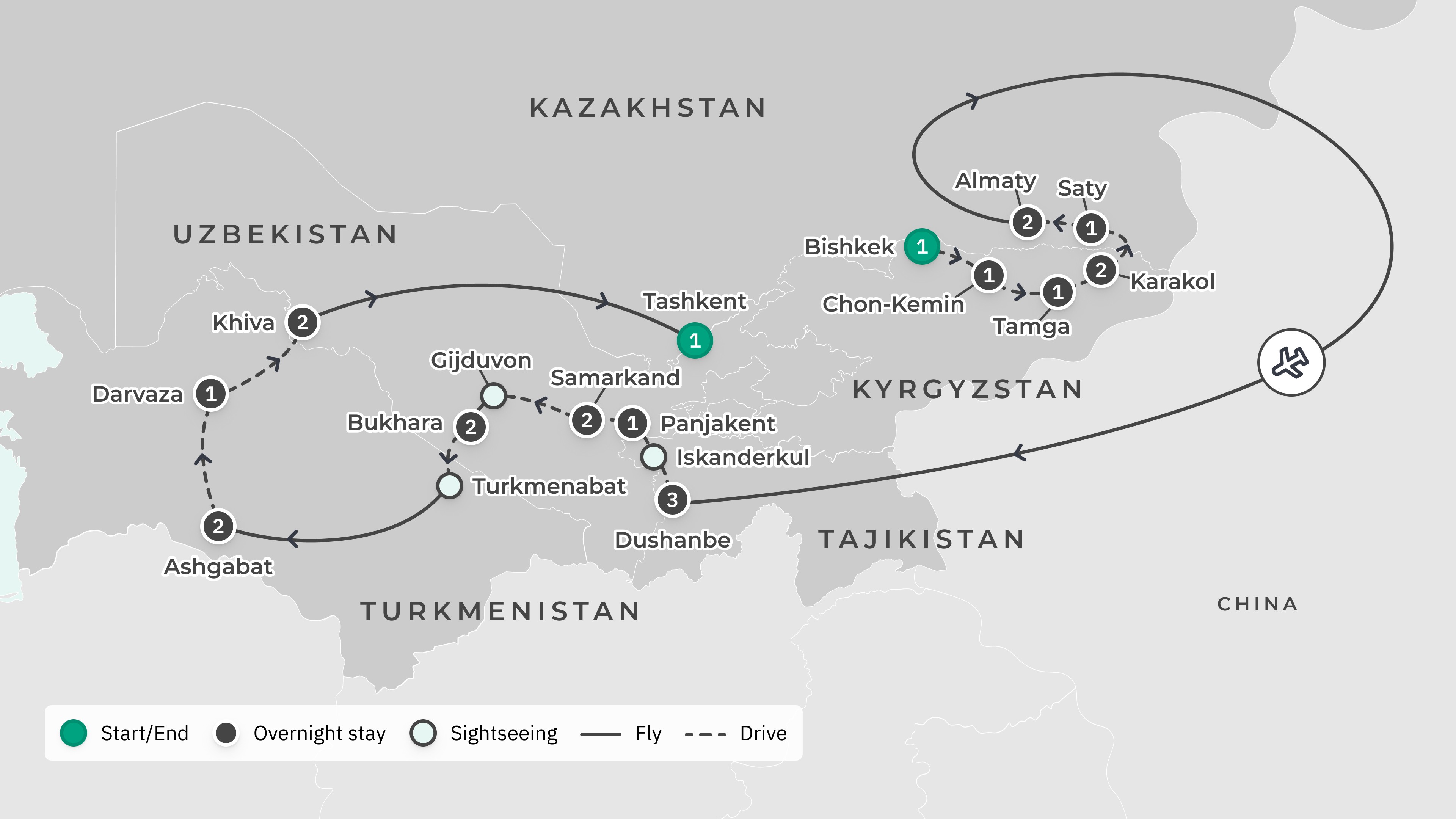 Alternatively, enjoy a free day in Almaty. Take the cable car up to Kök Töbe for panoramic views, wander the tree-lined streets and cafes of the centre, explore boutiques along Zhibek Zholy, visit the Central State Museum to learn more about Kazakhstan’s history, or head to the Medeu ice rink and Shymbulak ski resort in the nearby mountains. You can also simply relax at your hotel and enjoy the leisure facilities.