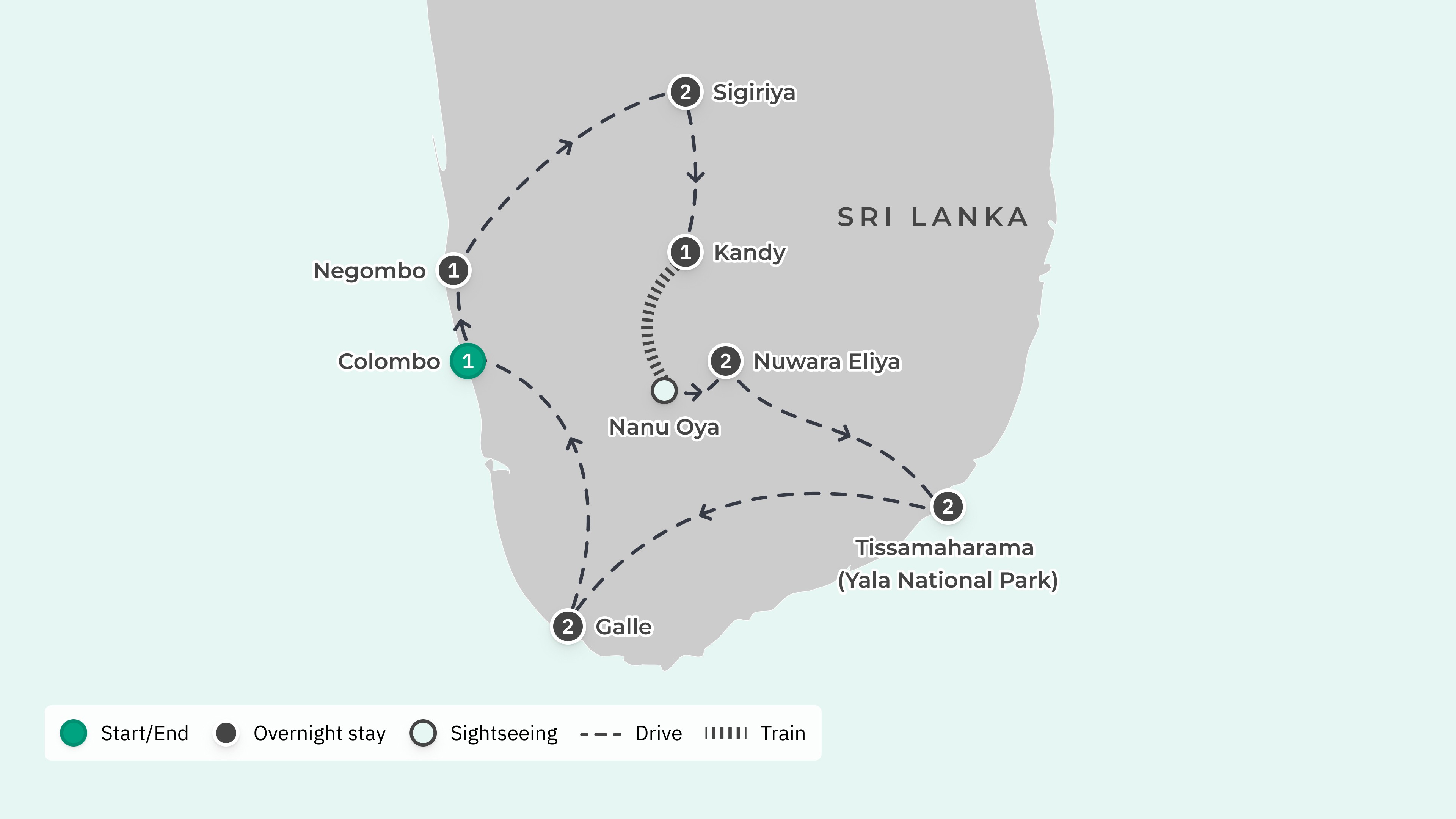 Your tour begins and ends at Bandaranaike International Airport (CMB), with return airport transfers.