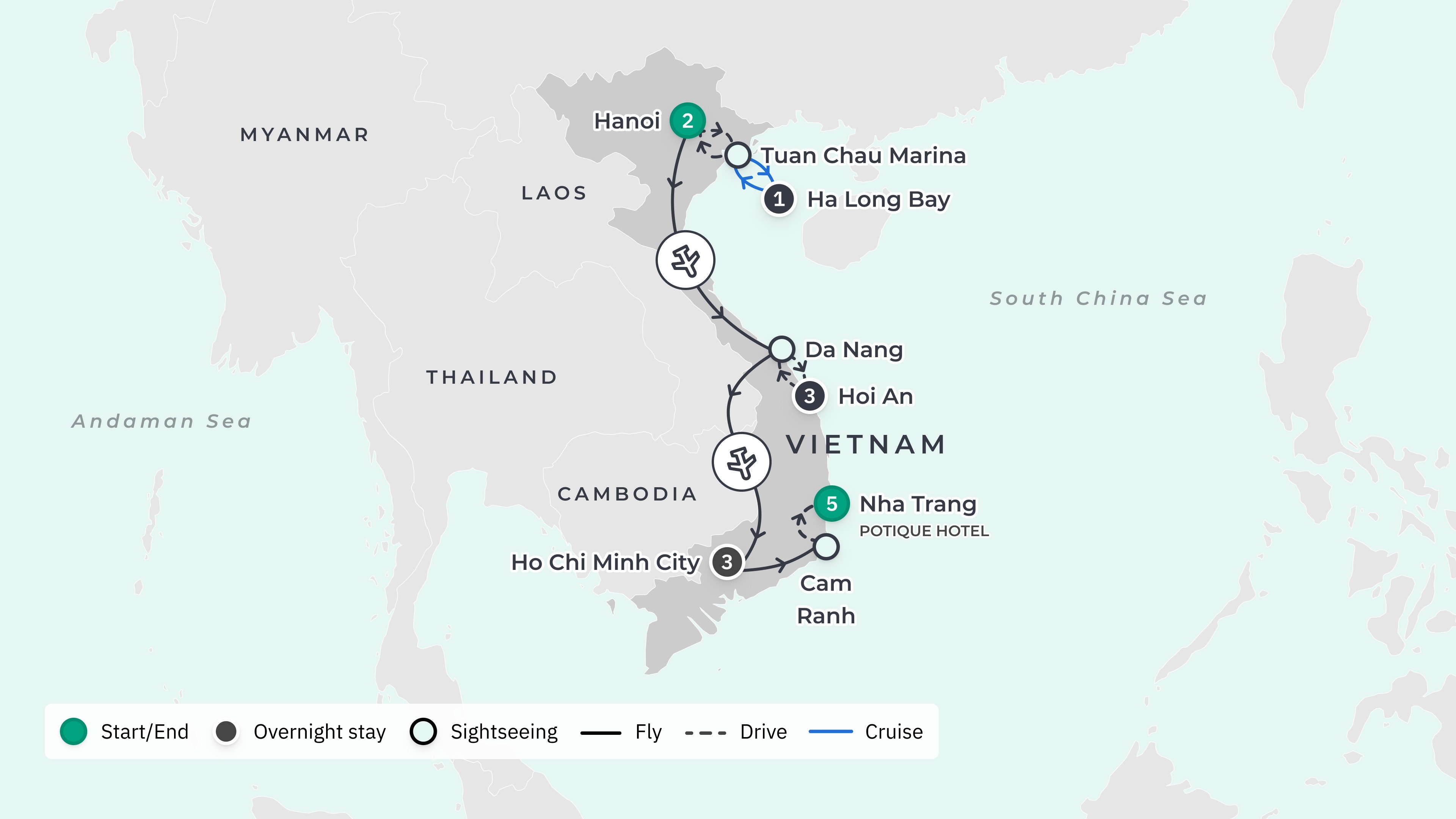 Your Vietnam tour ends after breakfast, as you wave goodbye to your fellow travellers and take a shared transfer to Camh Ranh International Airport (CXR) for your onward travel.